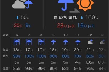 今日の天気は曇り時々晴れ。最高気温は21℃。