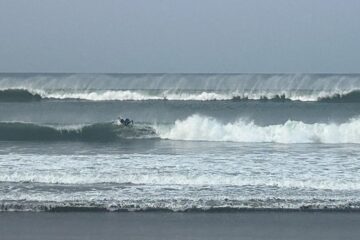 ウネリと地形が合わずよれていてショートライドですが