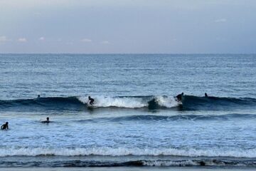 風は強めの北西風(サイドオフ)。サイズは腹前後SET胸。人数は15人くらい(3ピーク)。